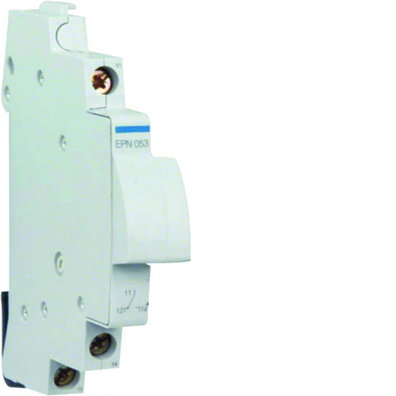 Marque: HagerRéférence: EPN053EAN: 3250612360574Emballage: 1Description: Auxiliaire télérupteur pour contact maintenue 24 à 230V 1/2MDO.