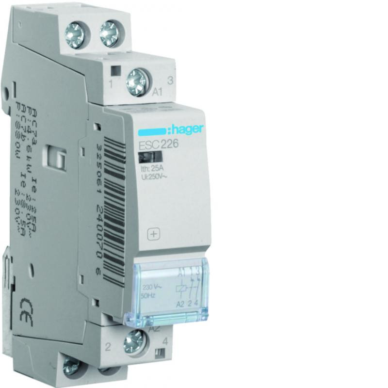 Marque: HagerRéférence: ESC226EAN: 3250612400713Emballage: 12/12Description: Contacteur 2x25A 230V 2NF 1MOD.