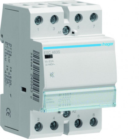 Marque: HagerRéférence: ESC463SEAN: 3250612400430Emballage: 4/4Description: Contacteur silencieux 4x63A 230V 4NO 3MOD.