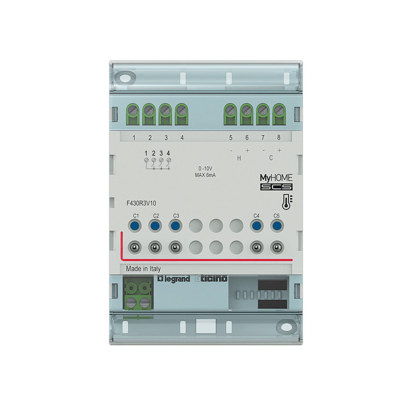 Marque: Bticino (Legrand)Référence: F430R3V10EAN: 8005543502846Emballage: AQ2/28Description: MyHOME - Actuator 3 sortie et 2x0-10V pour thermoregulation