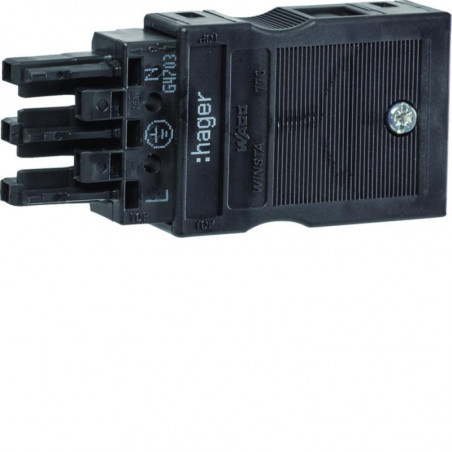 Marque: HagerRéférence: G4703EAN: 4012740849562Emballage: 25Description: Connecteur dentrée 3P pour prise Ecoline