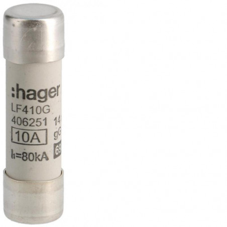 Marque: HagerRéférence: LF410GEAN: 3250614062513Emballage: 10/10Description: Cartouche-fusible indus 14x51 gG 10A