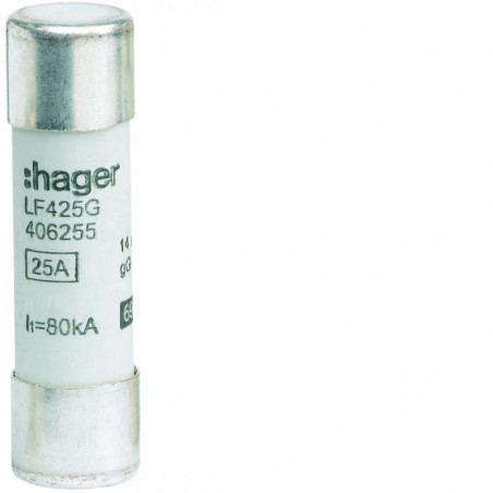 Marque: HagerRéférence: LF425GEAN: 3250614062551Emballage: 10/10Description: Cartouche-fusible indus 14x51 gG 25A