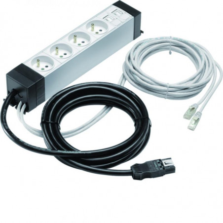 Bloc multiprises précablée 4 x 230 V 2PT, 2 x RJ45 Cat6 UTP câbles et fiches