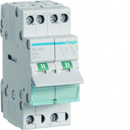 Marque: HagerRéférence: SFL225EAN: 3250615510822Emballage: 1Description: Inverseur modulaire 2 ples 25A, point commun aval, I-II