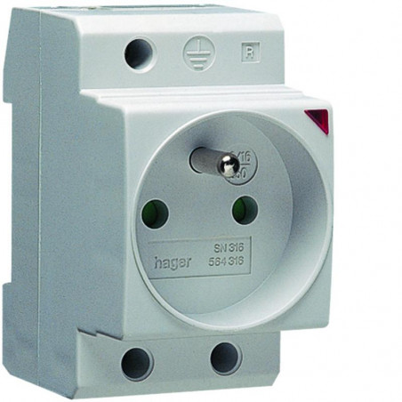 Marque: HagerRéférence: SN316EAN: 3250615643162Emballage: 4/4Description: Prise de courant modulaire 2P+T + voyant 2½ MOD.