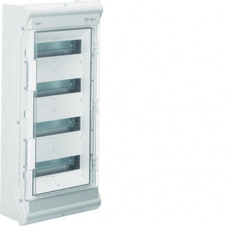 Marque: HagerRéférence: VE412PNEAN: 3250616450370Emballage: 1Description: Coffret étanche vector IP65 4R. 48MOD. - pour lextérieur