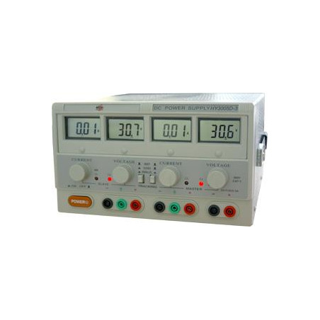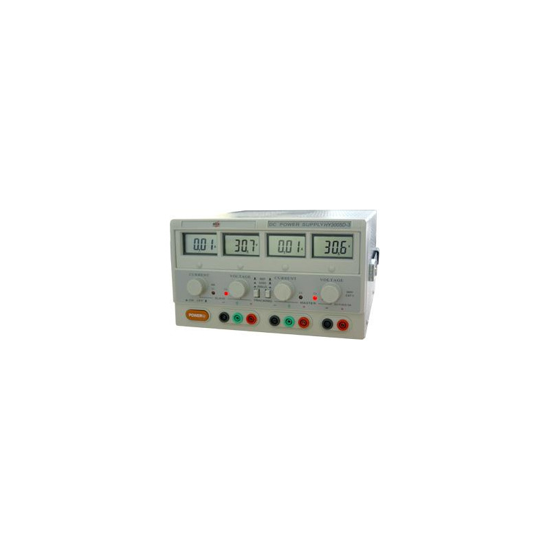 Marque: ELIXRéférence: 20223Description: Alimentation DC stabilisée ajustable - 2x0-30V DC/2x0-5A + 5V DC/3AEmballage: 1