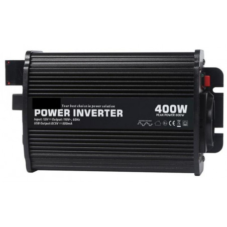Marque: ELIXRéférence: 21134Description: Inverseur de tension - 12V DC vers 230V AC / 400WEmballage: 1