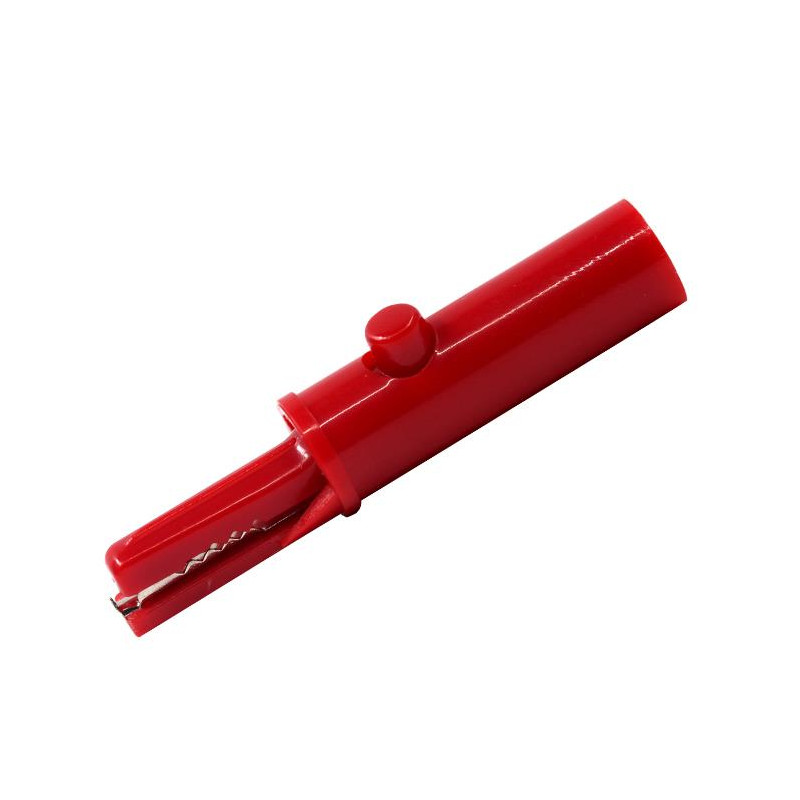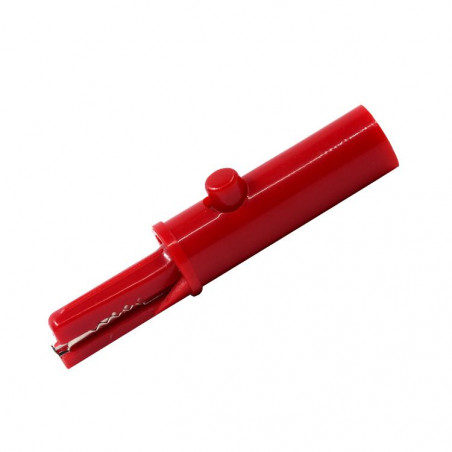 Description: Pince crocodile avec prise banane femelle 4mm - Rouge - Entièrement isolée - 25 pièces