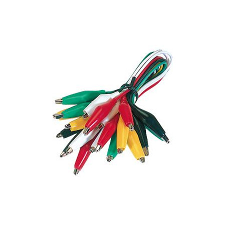 Marque: ELIMEXRéférence: 34003Description: Jeu de cordons avec pinces crocodiles miniatures - 5 couleurs - 10 piècesEmballage: 1