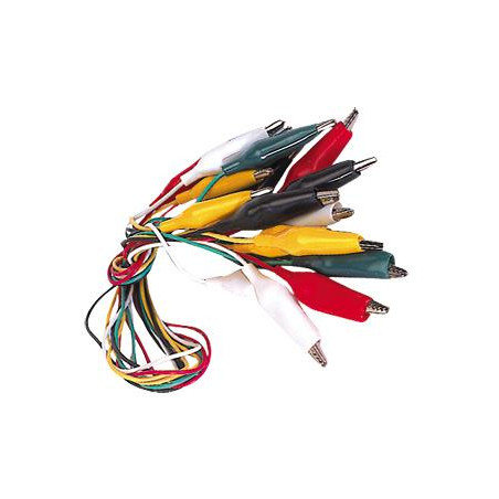 Description: Jeu de cordons avec grandes pinces crocodiles - 5 couleurs - 10 pièces