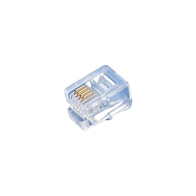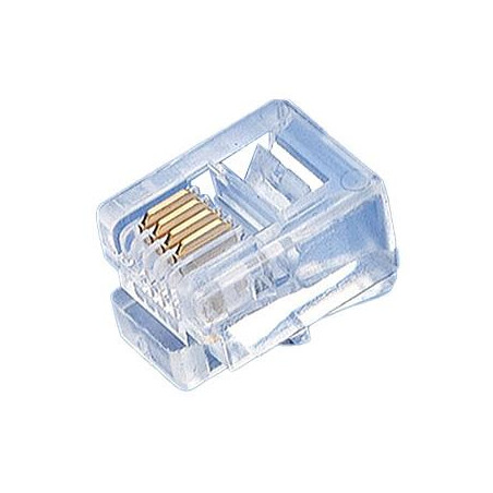 Marque: ELIMEXRéférence: 34416Description: Fiches téléphoniques RJ14 6/4 mâles - A sertir - 100 piècesEmballage: 100