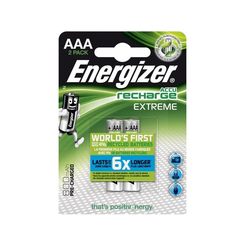Marque: ENERGIZERRéférence: 36639Description: Energizer - Pile rechargeable Ni-MH Extreme AAA / HR03 - 800 mAh - 2 piècesEmballage: 1