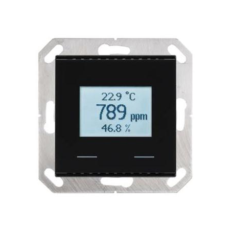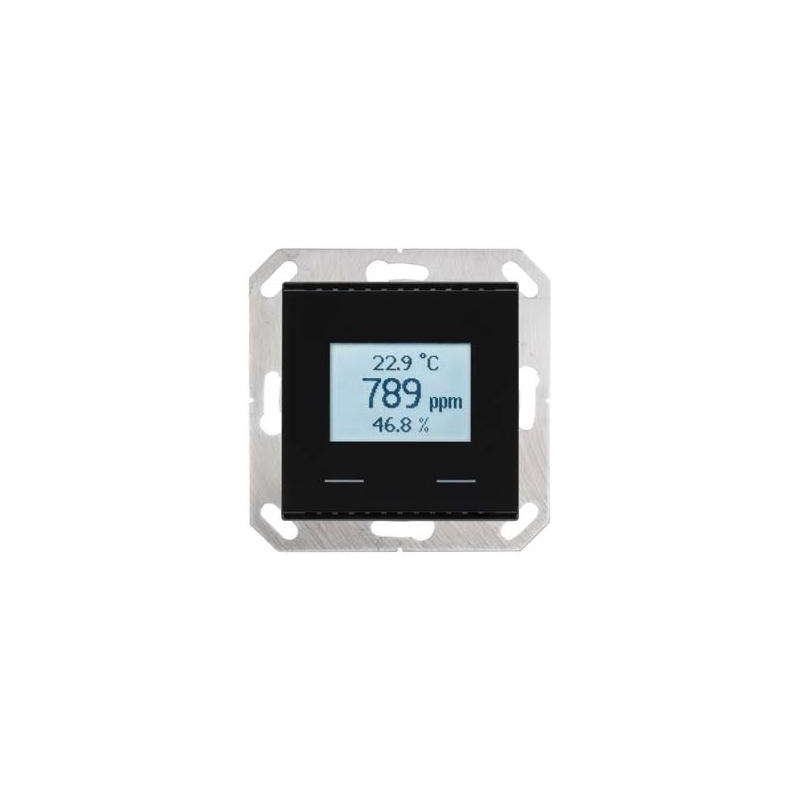 Description: Installation ultra platCadre exclusif 55x55Installation dans un botier encastré standardPortes logiques 4 ET et 4 OUCO2, température et humiditéAffichage 1-3 lignes2 boutons tactilesChamp de confort (DIN 1946)Calcul du point de roséeValeurs limitesRégulateur PI pour le chauffage et le refroidissement