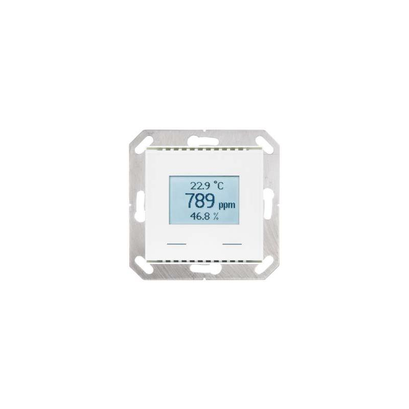 Description: Installation ultra platCadre exclusif 55x55Installation dans un botier encastré standardPortes logiques 4 ET et 4 OUCO2, température et humiditéAffichage 1-3 lignes2 boutons tactilesChamp de confort (DIN 1946)Calcul du point de roséeValeurs limitesRégulateur PI pour le chauffage et le refroidissement