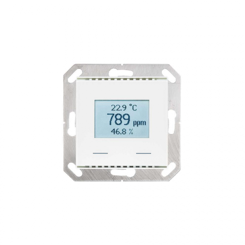 Description: Installation ultra platCadre exclusif 55x55Installation dans un botier encastré standardPortes logiques 4 ET et 4 OUCOV, température et humiditéAffichage 1-3 lignes2 boutons tactilesChamp de confort (DIN 1946)Calcul du point de roséeValeurs limitesRégulateur PI pour le chauffage et le refroidissement