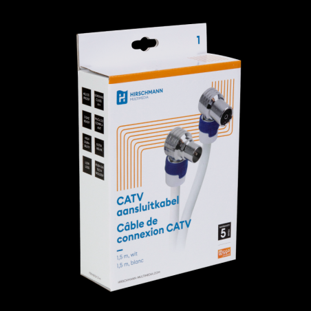 Câble de connexion CATV à l'épreuve de la 4G / LTE - 1,5 m avec connecteurs compacts IEC KOKWI 5 / KOSWI 5 (IEC femelle coudé - IEC mâle coudé). Classe A ++. Approuvé Telenet