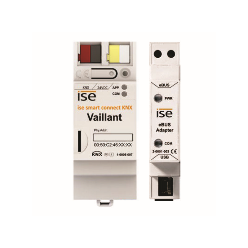 Description: Ise smart connect KNX Vaillant adapter offre la possibilité dintégrer totalement le Vaillant multiMATIC dans une installation KNX. Choix du régime et régulation des consignes pour 3 zones de chauffage Choix du régime et régulation des consignes pour leau chaude sanitaire Choix du régime pour la ventilation Informations liées au système, telles que mode de service, messages derreur, date et heure, température extérieure, statut du système Rendement énergétique du chauffe-eau solaire et de la pompe à chaleur