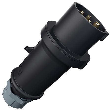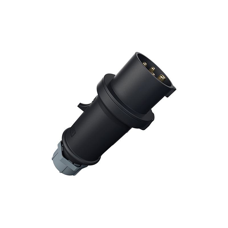 FICHE CEE PROTOP 32A 4P 7H 500V IP44.BORNES A VIS.PRESSE-ETOUPE AVEC JOINT.ARRET DE TRACTION AVEC PROTECTION CONTRE PLIAGEENVELOPPE NOIRE FILETEE AVEC GLISSIERE DE SECURITE.