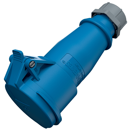 COUPLEUR CEE AM-TOP 16A 3P 6H 230V IP44.BORNES A VIS.CONTACTS NICKELES DANS UN SUPPORT DE CONTACTS A HAUTE RESISTANCE THERMIQUE.PRESSE-ETOUPE AVEC JOINT.ARRET DE TRACTION AVEC PROTECTION CONTRE PLIAGE.ENVELOPPE MONOBLOC BLEUE.
