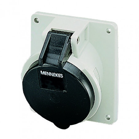 PRISE A ENCASTRER CEE 32A 5P 5H 600-690V IP44 Y COMPRIS JOINT.BORNES A VIS.ENVELOPPE GRIS CLAIR AVEC DIMENSIONS DE LA BRIDE A X B: 100 X 92 MM ET TROUS DE LA BRIDE D X E: 85 X 77 MM. COUVERCLE A CHARNIERE AVEC COULEUR D'IDENTIFICATION NOIRE.LA PRISE EST I