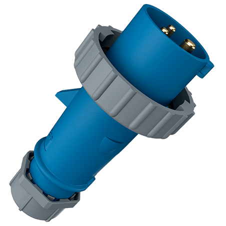 FICHE CEE AM-TOP 32A 3P 6H 230V IP67.BORNES A VIS.PRESSE-ETOUPE AVEC JOINT.ARRET DE TRACTION AVEC PROTECTION CONTRE PLIAGE.ENVELOPPE MONOBLOC BLEUE.