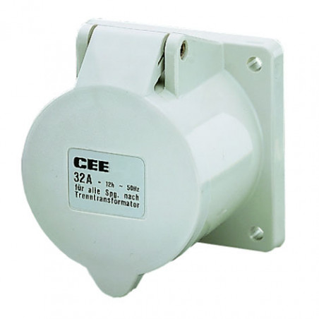 PRISE A ENCASTRER CEE 16A 3P 1H >50-500V IP44 Y COMPRIS JOINT.POSITION HORAIRE SPECIALE 1H.BORNES A VIS.ENVELOPPE GRIS CLAIR AVEC DIMENSIONS DE LA BRIDE A X B: 75 X 75 MM ET TROUS DE LA BRIDE D X E: 60 X 60 MM.COUVERCLE A CHARNIERE AVEC COULEUR D'IDENTIFI