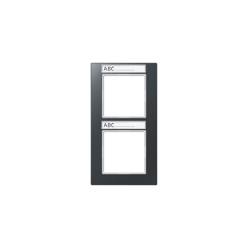 CADRE DE FINITION A CREATIONAVEC 2 PORTE-ETIQUETTE 9 X 55 MMPOUR MONTAGE VERTICALPOUR SERIE AVERSION 2 POSTESDIMENSIONS 87 X 158 MMMATERIAU THERMOPLASTIQUE RESISTANT AUX CHOCS TRES BRILLANTCOULEUR ANTHRACITE MAT