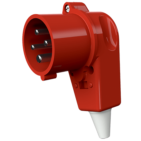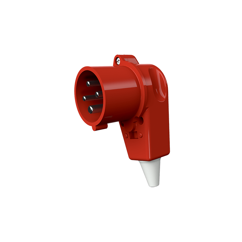 FICHE CEE COUDEE 16A 4P 6H 400V IP44.BORNES A VIS.AVEC CONTACTS NICKELESENTREE DE CABLE FLEXIBLE.ENVELOPPE ROUGE.