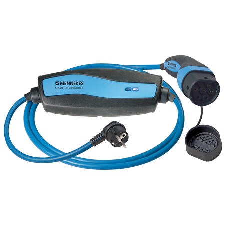 CABLE DE RECHARGE MODE 2, PUISSANCE JUSQU'A 13A 230V MONOPHASE. AVEC CONNECTEUR TYPE 2 A LA COTE VOITURE ET FICHE DOMESTIQUE A LA COTE NET. LONGUEUR 4M