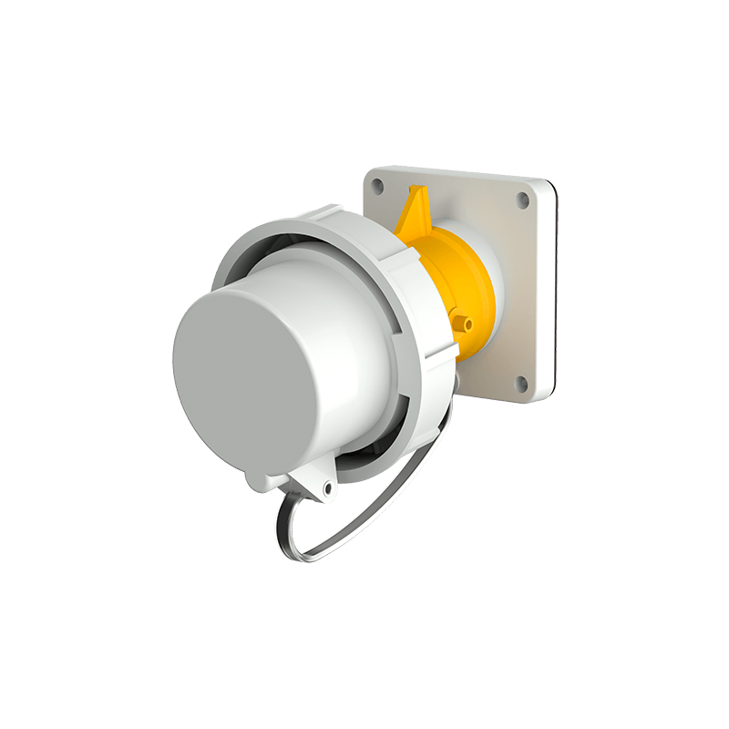 FICHE D'APPAREIL CEE 16A 3P 4H 110V IP67 Y COMPRIS LE CAPOT DE PROTECTION.LA FICHE D'APPAREIL EST INCLINEE A 10 .ENVELOPPE JAUNE AVEC DIMENSIONS DE LA BRIDE A X B: 85 X 85 MM ET TROUS DE LA BRIDE D X E: 70 X 70 MM.UN JOINT EST FOURNI POUR L'INSTALLATION E