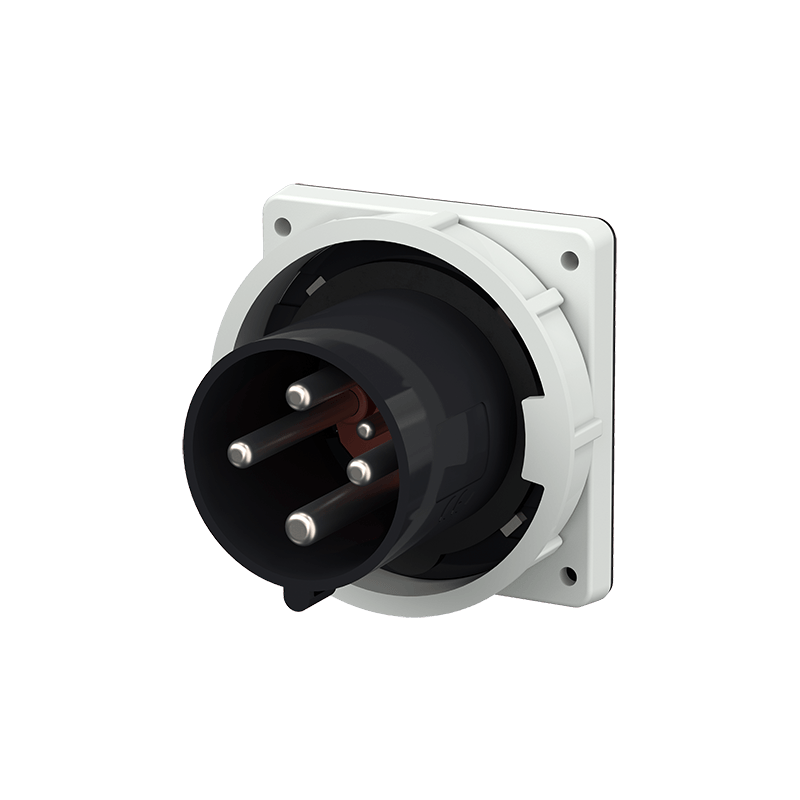 FICHE D'APPAREIL CEE 125A 4P 7H 500V IP67.ENVELOPPE NOIRE AVEC DIMENSIONS DE LA BRIDE A X B: 130 X 104 MM ET TROUS DE LA BRIDE D X E: 104 X 104 MM.UN JOINT EST FOURNI POUR L'INSTALLATION ENTRE LA BRIDE ET LE PANNEAU.CONTACTS NICKELES DANS UN SUPPORT DE CO
