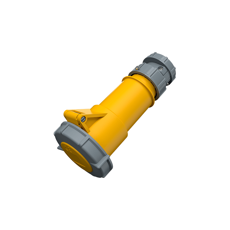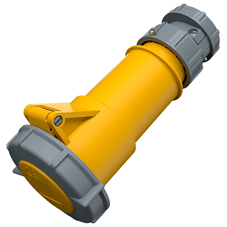 COUPLEUR CEE POWERTOP 16A 3P 4H 110V IP67.BORNES A VIS.UN SUPPORT DE CONTACTS A HAUTE RESISTANCE THERMIQUE.ARRET DE TRACTION EXTERNE VISSABLE VERROUILLABLE AVEC UNE VIS.ENVELOPPE MONOBLOC JAUNE.