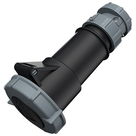 COUPLEUR CEE POWERTOP 16A 4P 7H 500V IP67.BORNES A VIS.UN SUPPORT DE CONTACTS A HAUTE RESISTANCE THERMIQUE.ARRET DE TRACTION EXTERNE VISSABLE VERROUILLABLE AVEC UNE VIS.ENVELOPPE MONOBLOC NOIRE.