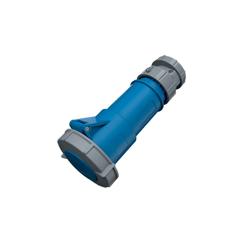 COUPLEUR CEE POWERTOP 32A 4P 9H 230V IP67.BORNES A VIS.UN SUPPORT DE CONTACTS A HAUTE RESISTANCE THERMIQUE.ARRET DE TRACTION EXTERNE VISSABLE VERROUILLABLE AVEC UNE VIS.ENVELOPPE MONOBLOC BLEUE.