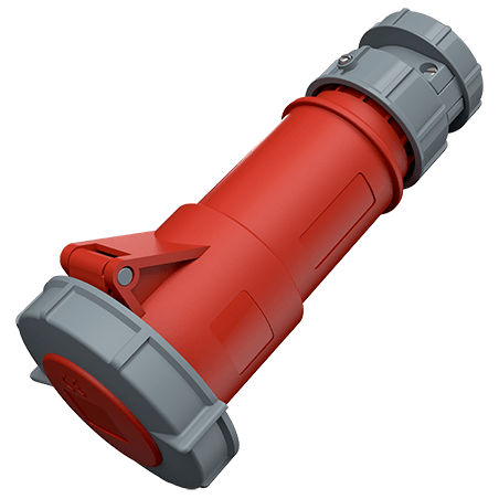 COUPLEUR CEE POWERTOP 32A 5P 6H 400V IP67.BORNES A VIS.UN SUPPORT DE CONTACTS A HAUTE RESISTANCE THERMIQUE.ARRET DE TRACTION EXTERNE VISSABLE VERROUILLABLE AVEC UNE VIS.ENVELOPPE MONOBLOC ROUGE.