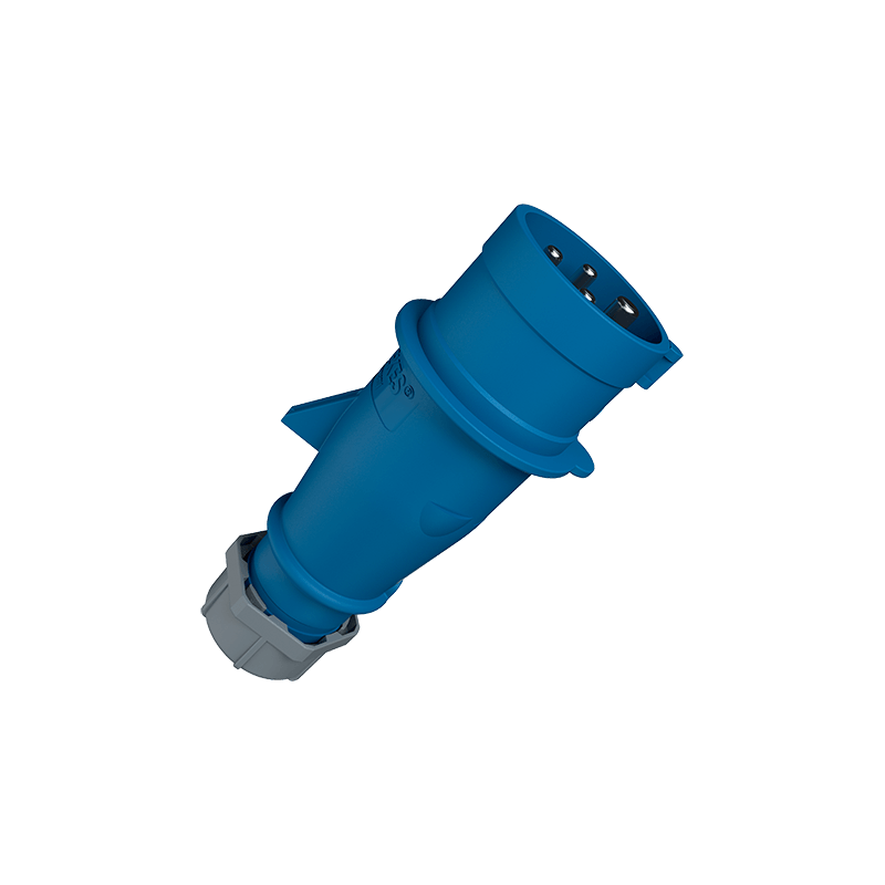 FICHE CEE AM-TOP AVEC INVERSEUR DE PHASE 32A 4P 9H 230V IP44.BORNES A VIS.PRESSE-ETOUPE AVEC JOINT.ARRET DE TRACTION AVEC PROTECTION CONTRE PLIAGE.ENVELOPPE MONOBLOC BLEUE.