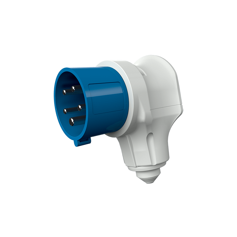 FICHE CEE COUDEE VARIOTOP 16A 5P 9H 230V IP44.BORNES A VIS.AVEC CONTACTS NICKELESENTREE DE CABLE FLEXIBLE.L'ENVELOPPE GRIS CLAIR EST PIVOTANTE DE 60 VERS LA GAUCHE ET VERS LA DROITE.COULEUR CODIFIEE BLEUE.