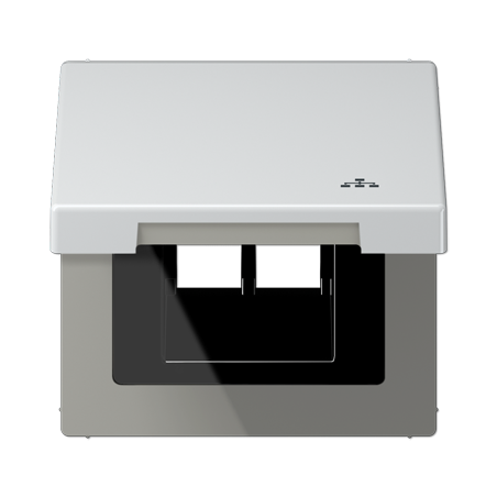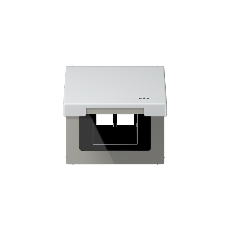 ENJOLIVEUR COUVERCLE AVEC RESSORT DE RAPPEL AVEC SYMBOLE LANPOUR MECANISME RJ 11/12 RJ 45 NUMERIS/INTERNET ART. N. UAE 2 X 8 UPO, UAE 8-8 UPOPOUR MECANISME RJ 45 CATEGORIE 6 / CLASSE E ART. N. UAE 8-8 UPOK6E, UAE 8-8 UPOK6INCLUS ENJOLIVEUR