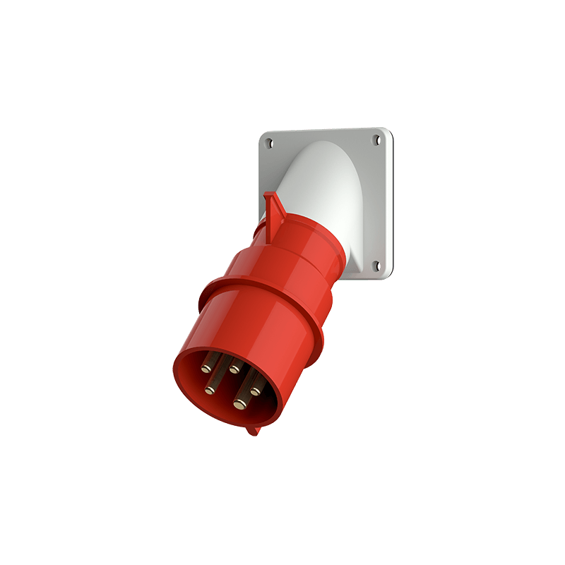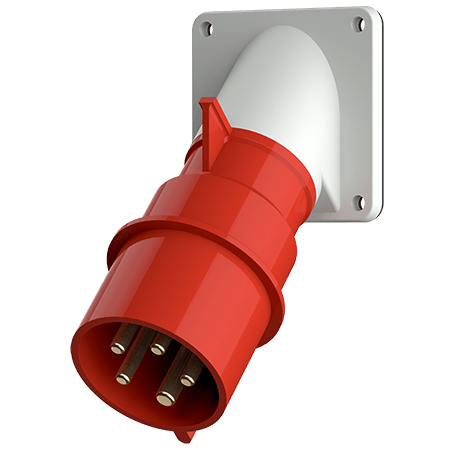 FICHE D'APPAREIL CEE 16A 5P 6H 400V IP44.LA FICHE D'APPAREIL EST INCLINEE A 45 .ENVELOPPE ROUGE AVEC DIMENSIONS DE LA BRIDE A X B: 85 X 85 MM ET TROUS DE LA BRIDE D X E: 70 X 70 MM.UN JOINT EST FOURNI POUR L'INSTALLATION ENTRE LA BRIDE ET LE PANNEAU.BORNE