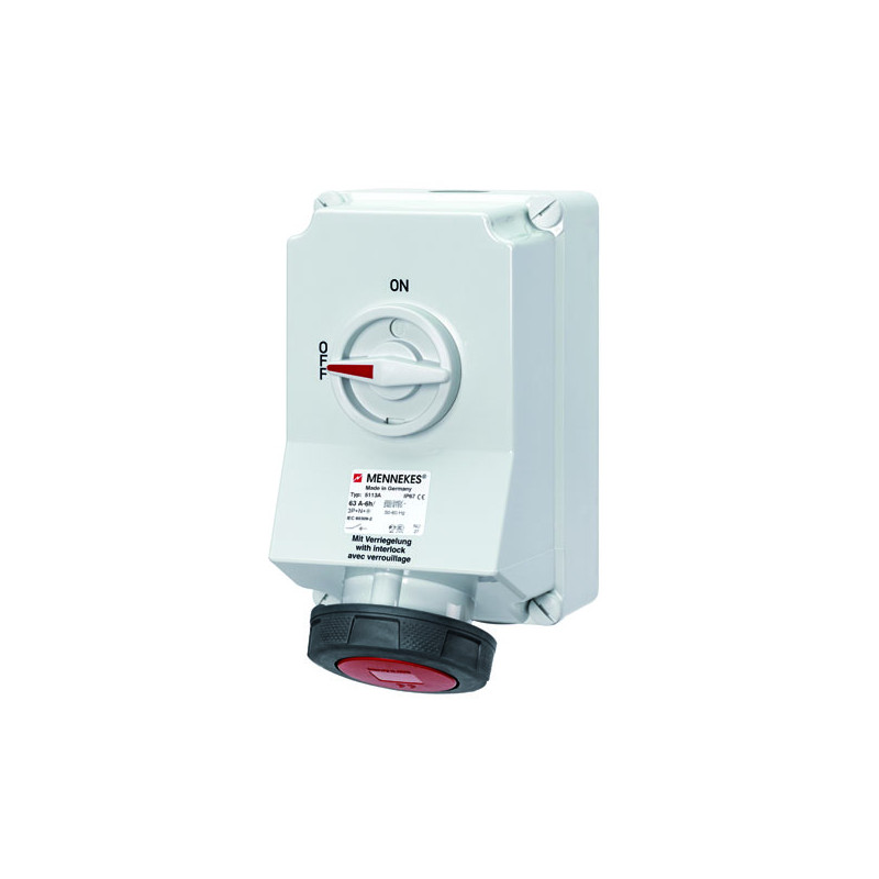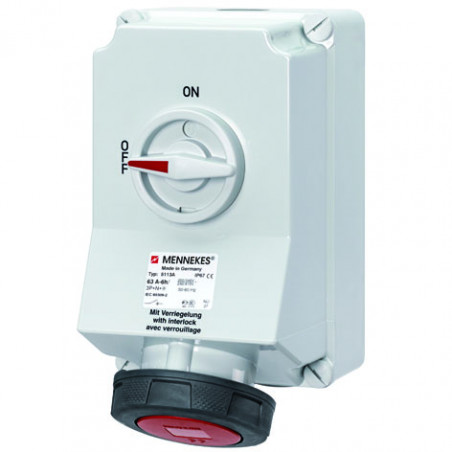 PRISE MURAL CEE 63A 5P 6H 400V IP67, AVEC INTERRUPTEUR ON/OFF.ET VERROUILLAGE MECANIQUE DUO.