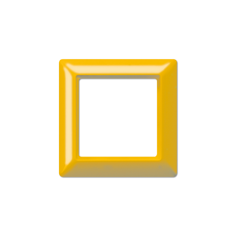 CADRE DE FINITION ASPOUR ENJOLIVEUR AVEC VITREVERSION 1 POSTEDIMENSIONS 80,5 X 80,5 MMMATERIAU THERMOPLASTIQUE RESISTANT AUX CHOCS TRES BRILLANTCOULEUR JAUNE