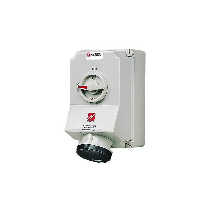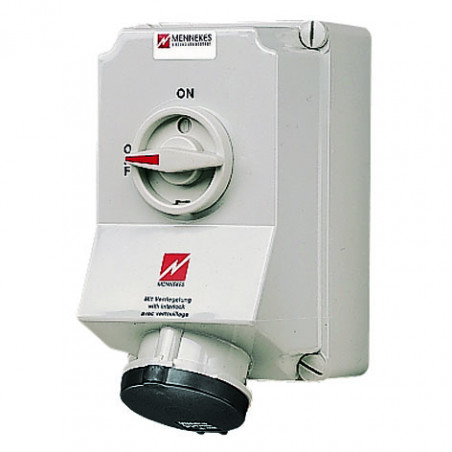 PRISE MURAL CEE 63A 4P 7H 500V IP44, AVEC INTERRUPTEUR ON/OFF.ET VERROUILLAGE MECANIQUE DUO.