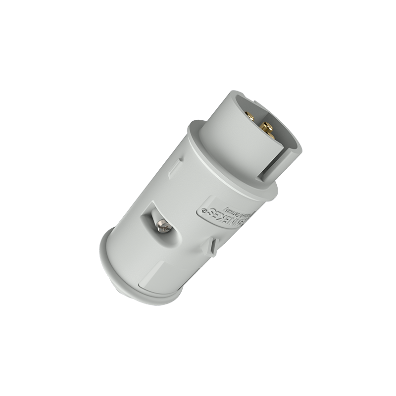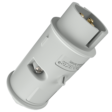 FICHE CEE 16A 3P 12H 40-50V IP44.50-60 HZBORNES A VIS.ARRET DE TRACTION AVEC PROTECTION CONTRE PLIAGE.ENVELOPPE GRIS CLAIR.