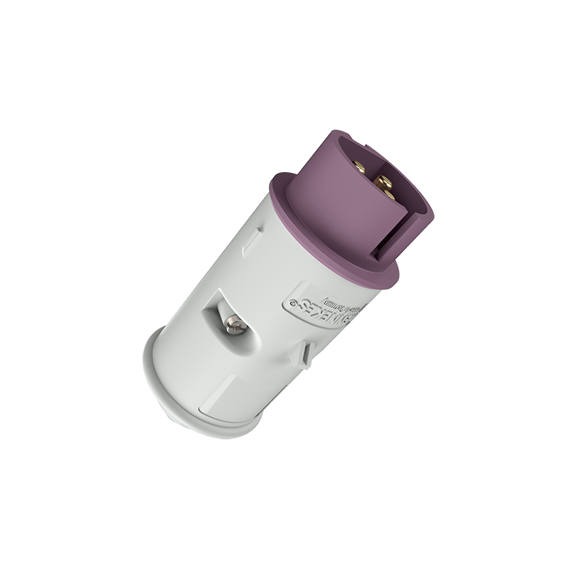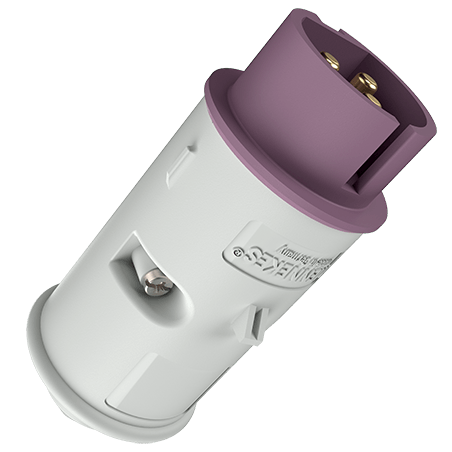 FICHE CEE 32A 3P 12H 20-25V IP44.50-60 HZBORNES A VIS.ARRET DE TRACTION AVEC PROTECTION CONTRE PLIAGE.ENVELOPPE GRIS CLAIR, COULEUR CODIFIEE VIOLET.