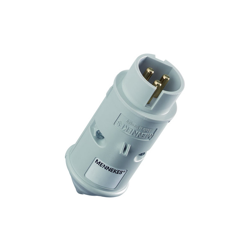 FICHE CEE 32A 3P 12H 40-50V IP44.50-60 HZBORNES A VIS.ARRET DE TRACTION AVEC PROTECTION CONTRE PLIAGE.ENVELOPPE GRIS CLAIR.