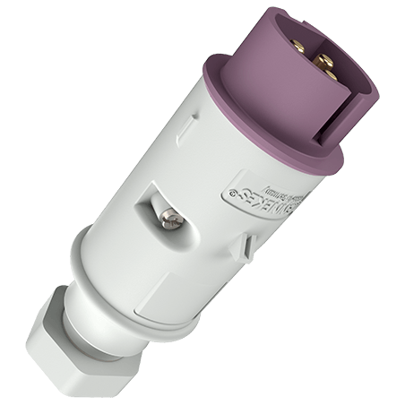 FICHE CEE 16A 3P 12H 20-25V IP44.50-60 HZBORNES A VIS.PRESSE-ETOUPE AVEC JOINT.ARRET DE TRACTION AVEC PROTECTION CONTRE PLIAGE.ENVELOPPE GRIS CLAIR, COULEUR CODIFIEE VIOLET.