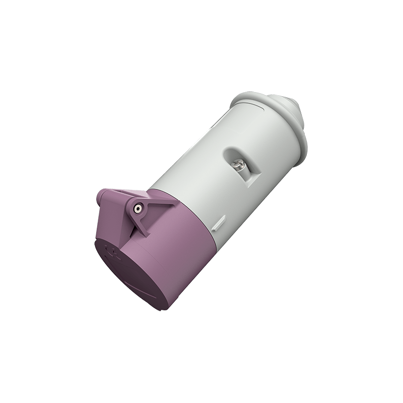 COUPLEUR CEE 32A 2P 20-25V IP44.50-60 HZBORNES A VIS.ARRET DE TRACTION AVEC PROTECTION CONTRE PLIAGE.ENVELOPPE GRIS CLAIR, COULEUR CODIFIEE VIOLET.
