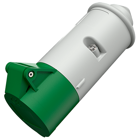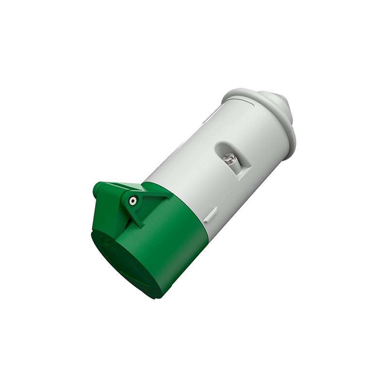 COUPLEUR CEE 16A 3P 4H 20-25, 40-50V IP44.100-200 HZBORNES A VIS.ARRET DE TRACTION AVEC PROTECTION CONTRE PLIAGE.ENVELOPPE GRIS CLAIR, COULEUR CODIFIEE VERTE.